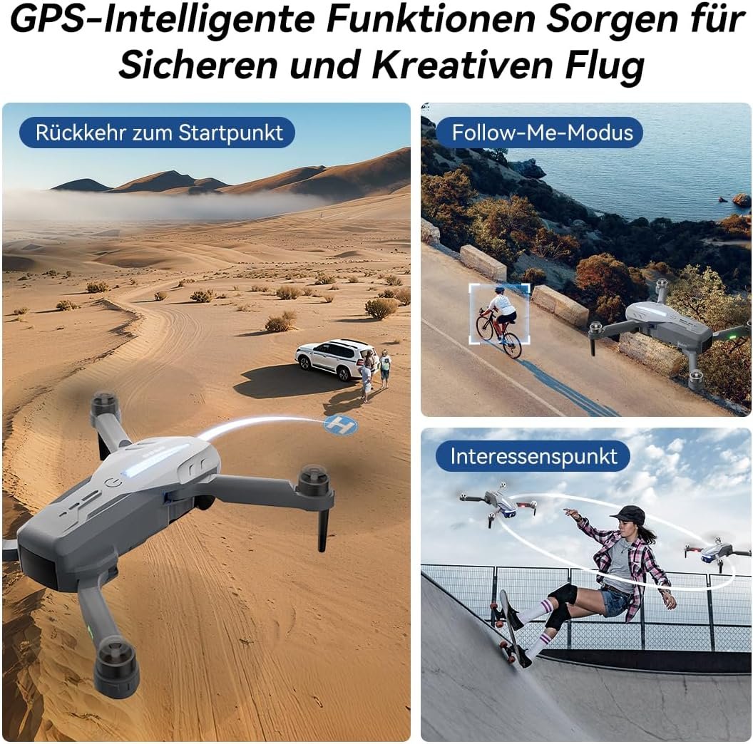 CHUBORY A77 GPS 4K Drohne – 84 Min. Flugzeit (3 Akkus), Bürstenlose Motoren, 800m Reichweite, Auto-Follow, Smart-Hover & Faltbares Design